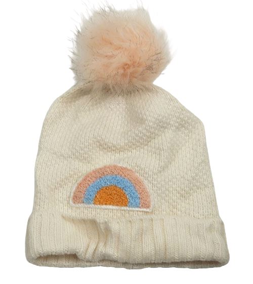 Smetanová čepice s duhou a kapucí