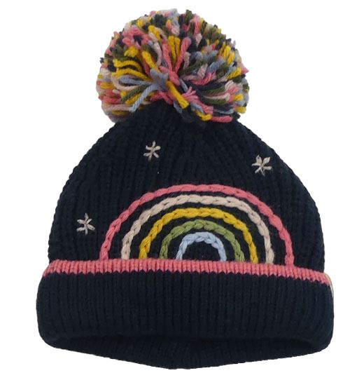 Tmavomodrá podšitá čepice s barevnou duhou a bambulí