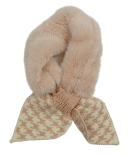 Světlerůžovo-bílá kožešinovo/pletená šála