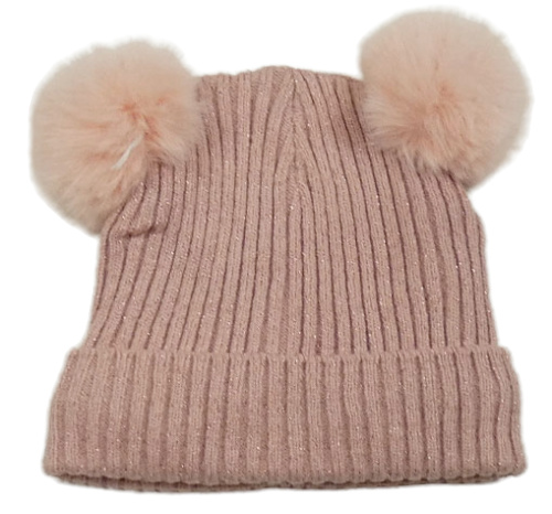 Světlerůžová třpytivá čepice s bambulemi Dopodopo