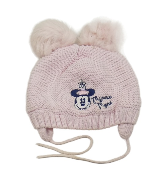 Světlerůžová pletená zateplená čepice s Minnie a bambulkami Disney