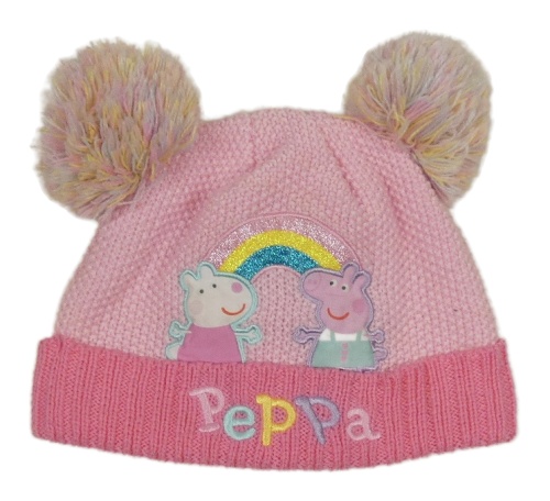 Růžová čepice s Peppou a bambulemi