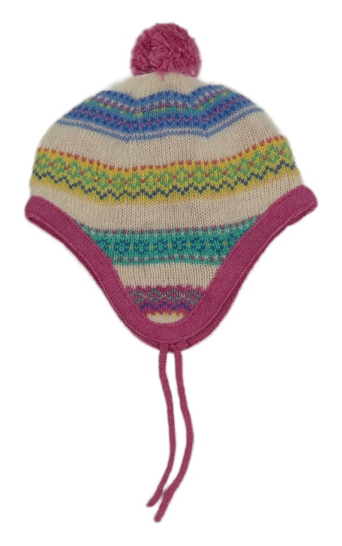 Bílo-barevná pruhovaná čepice s bambulí Jojo Maman Bébé