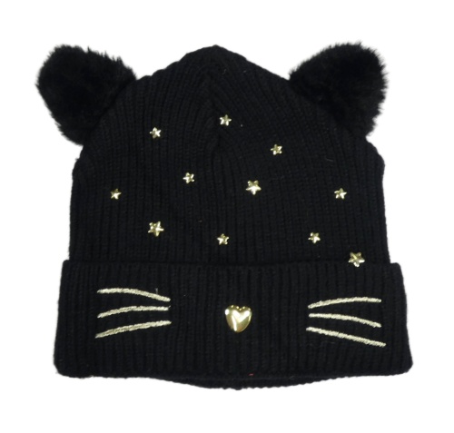 Černá čepice s hvězdami a ušima- kočka