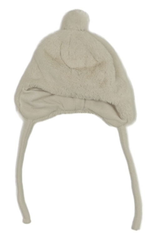 Smetanová kožešinová podšitá zavazovací čepice s bambulí H&M