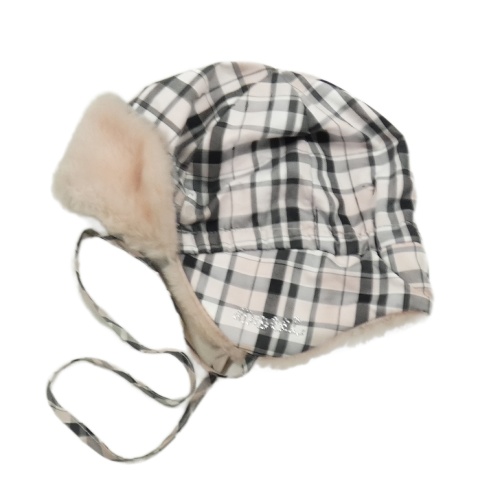 Světlerůžovo-černo-bílá kostkovaná šusťáková beranice s kožešinou
