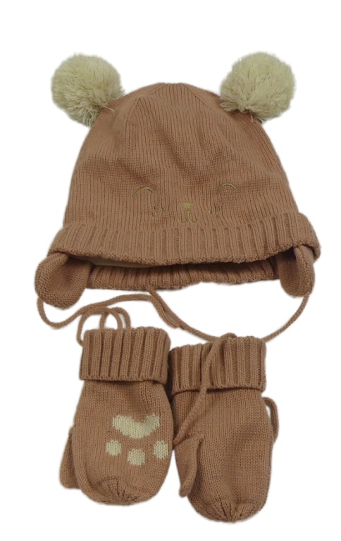 2set - Starorůžová čepice s čumákem a bambulemi + rukavice