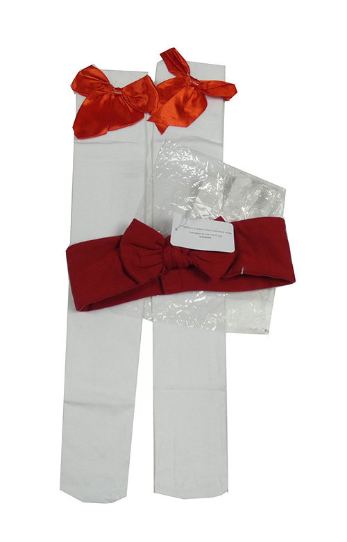 2set - Červená čelenka s mašlí + bílé silonkové podkoleny s mašlí