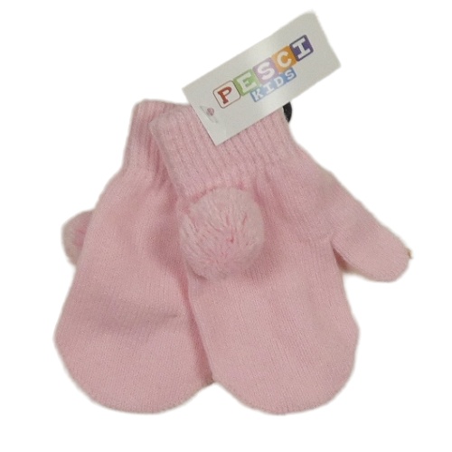Nové - Světlerůžové pletené palcové rukavice s bambulí