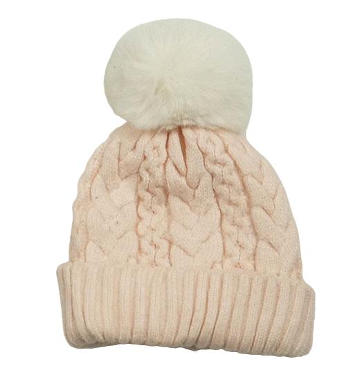 Světlerůžová pletená čepice s bambulí Laura Ashley