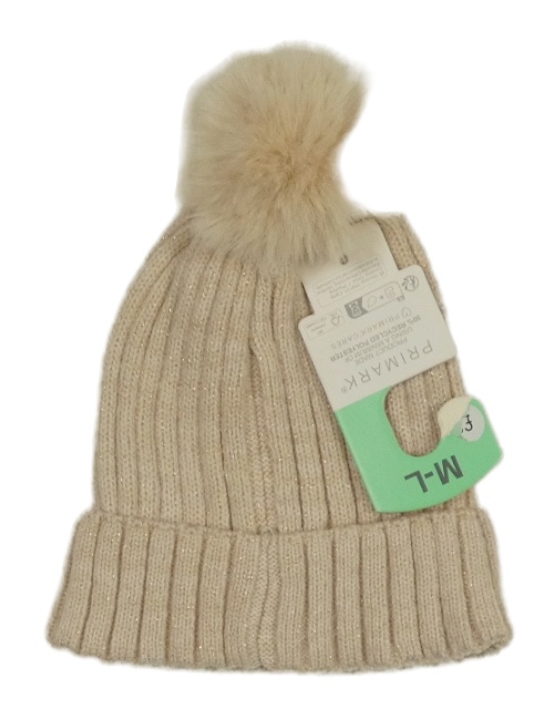 Nové - béžovo-zlatá melírovaná žebrovaná čepice s bambulí PRIMARK