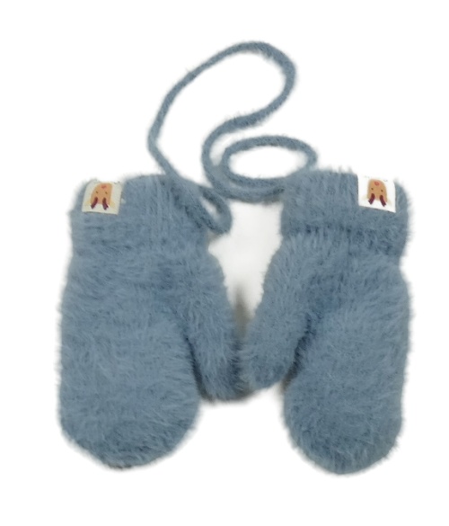 Modré chlupaté zateplené palcové rukavice na šňůře