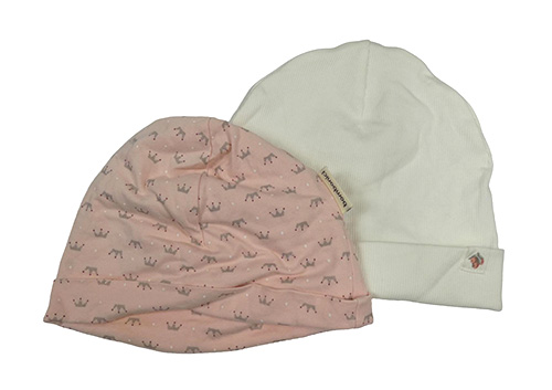 2set - Růžová bavlněná čepice s korunkami + smetanová žebrovaná