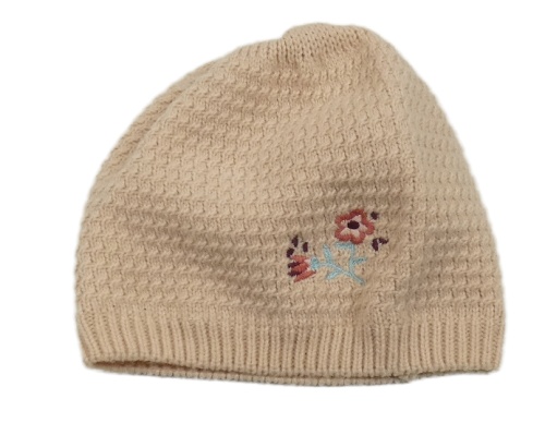 Pudrová pletená čepice s výšivkou květů