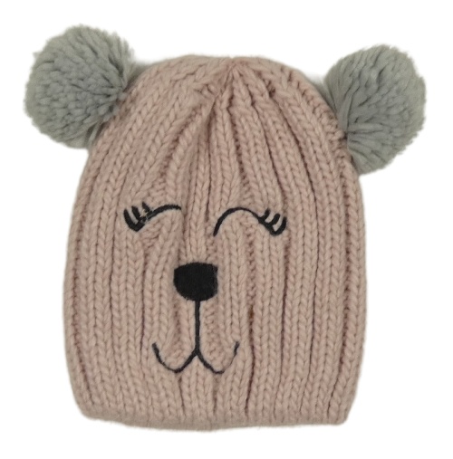Pudrová čepice s s čumákem a bambulemi