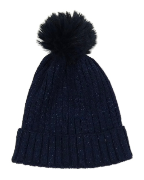 Tmavomodrá třpytivá pletená čepice s bambulí Primark