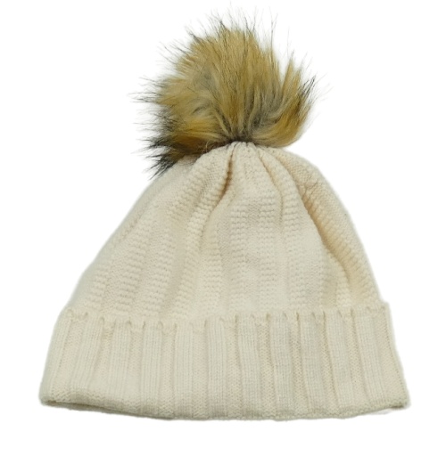 Smetanová pletená čepice s bambulí