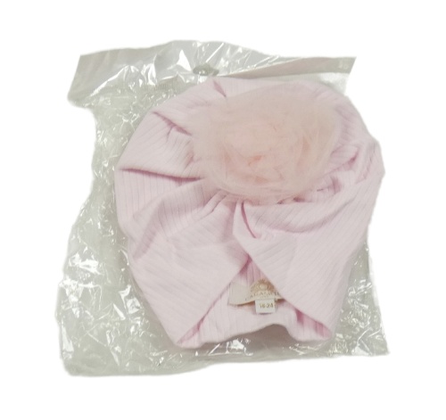 Nové - Světlerůžová žebrovaná turbanová čepice s tylem Caramelo