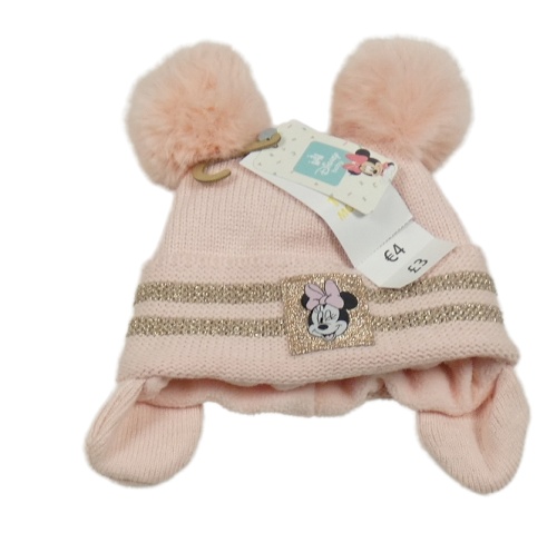 Nové - Růžová čepice s nášivkou a bambulemi - Minnie Disney