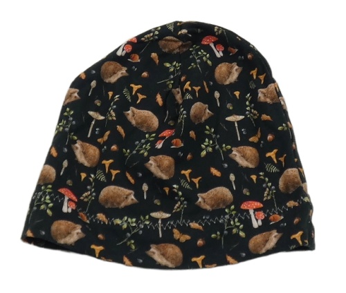 Černá čepice s houbami a ježky