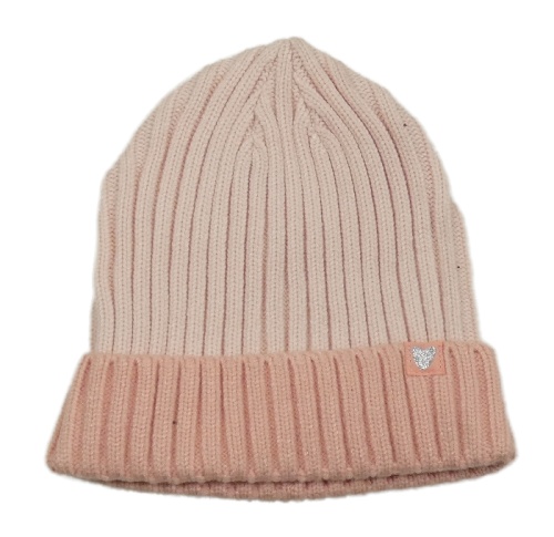 Světlerůžovo-růžová žebrovaná pletená čepice se srdíčkem