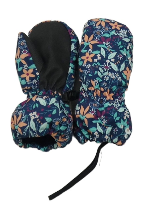Tmavomodré šusťákové zateplené palcové rukavice s kytičkami lupilu