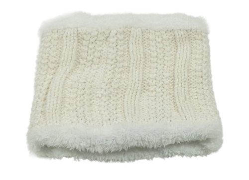 Smetanovo-zlatý melírovaný žebrovaný vzorovaný pletený zateplený nákrčník