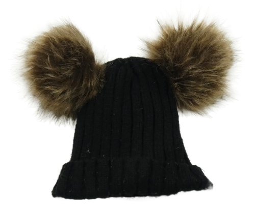 Černá pletená čepice s bambulemi