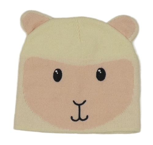 Smetanovo-světlerůžová pletená čepice - ovečka