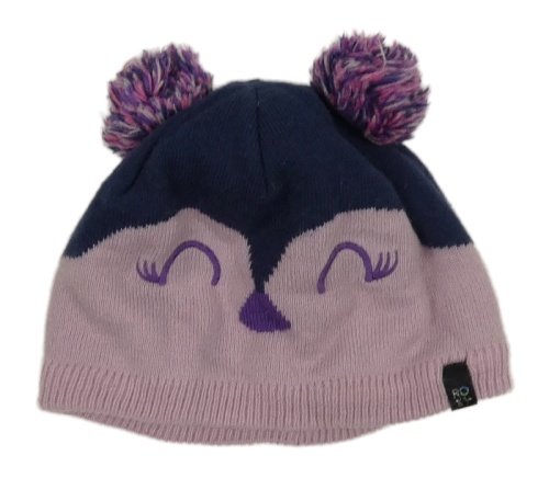 Tmavomodro-růžová pletená zateplená čepice s bambulemi
