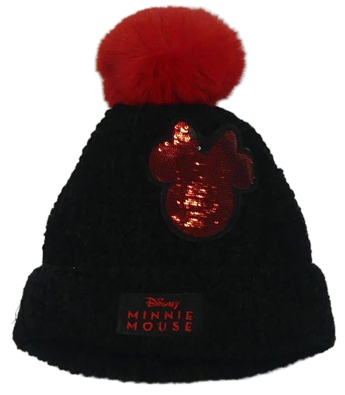 Černá žinylková čepice s Minnie z flitrů a bambulí George