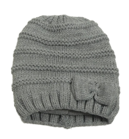 Šedá melírovaná třpytivá pletená čepice s mašlí Topomini