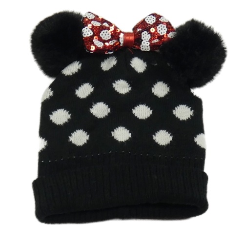 Černá puntíkatá čepice s mašlí a bambulemi - Minnie Disney