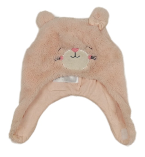 Světlerůžová kožešinová podšitá čepice s čumákem
