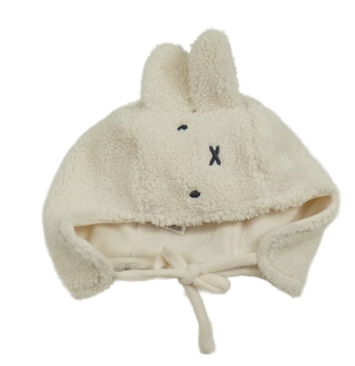 Smetanová huňatá podšitá čepice na zavazování - Miffi H&M