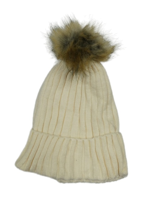 Smetanová žebrovaná čepice s bambulí PRIMARK