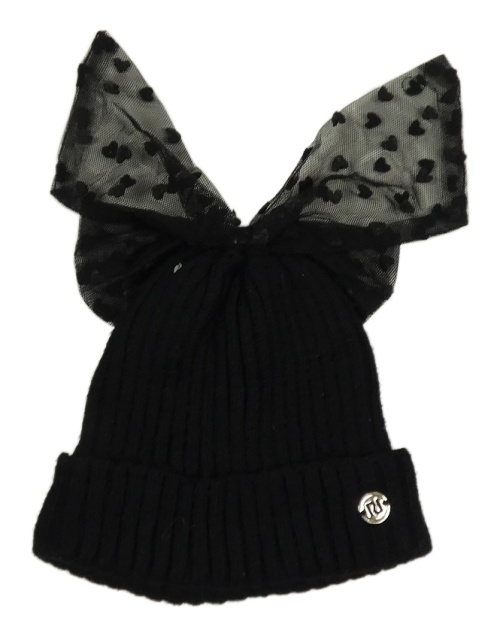 Černá žebrovaná úpletová čepice s tylovou mašlí se srdíčky RIVER ISLAND