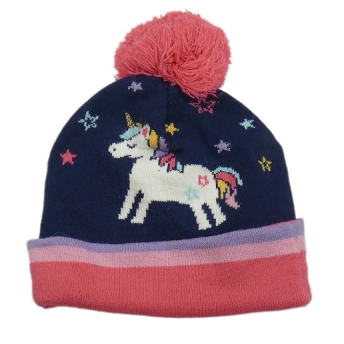 Tmavomodro-růžová čepice s jednorožcem a bambulí Lily & Dan