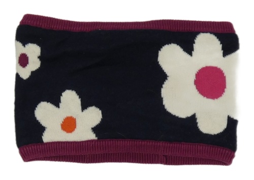 Tmavomodro-růžová pletená čelenka s květy Catimini