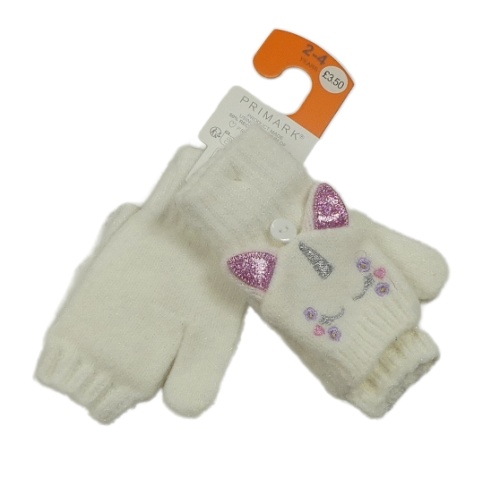 Nové - bílé překlápěcí pletené rukavice s jednorožci Primark