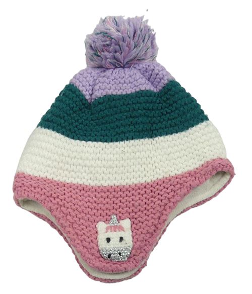 Růžovo-smetanovo-smaragdová čepice s jednorožcem a bambulí M&S
