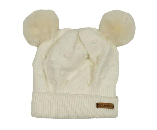 Smetanová 3D puntíkatá pletená čepice s bambulemi