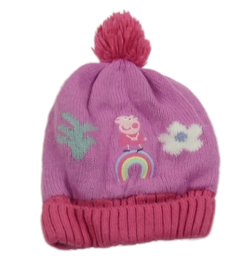 Tmavorůžová pletená čepice s Peppou a bambulí M&S