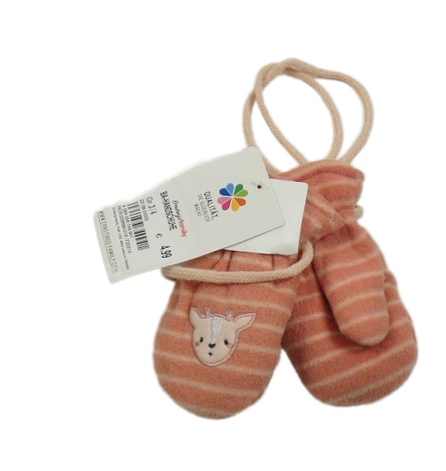 Nové - Starorůžovo-růžové pruhované fleecové palcové rukavice na šňůře se srnkou Topomini