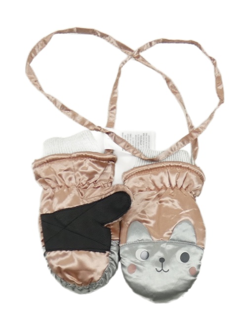 Starorůžové saténové zateplené palcové rukavice s kočkami