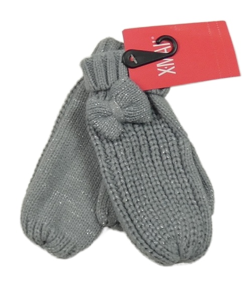 Nové - Šedé pletené třpytivé palcové rukavice s mašlí