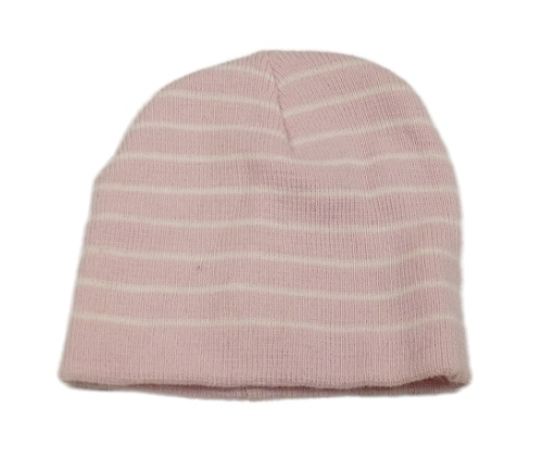Světlerůžovo-bílá pruhovaná pletená čepice