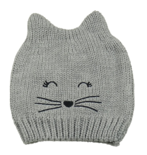 Šedá pletená čepice s čumákem - kočka