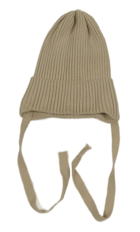 Béžová žebrovaná pletená podšitá čepice