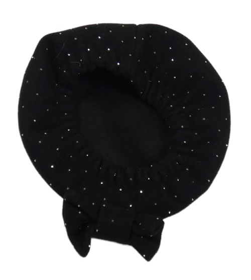 Černý baret s kamínky a mašlí